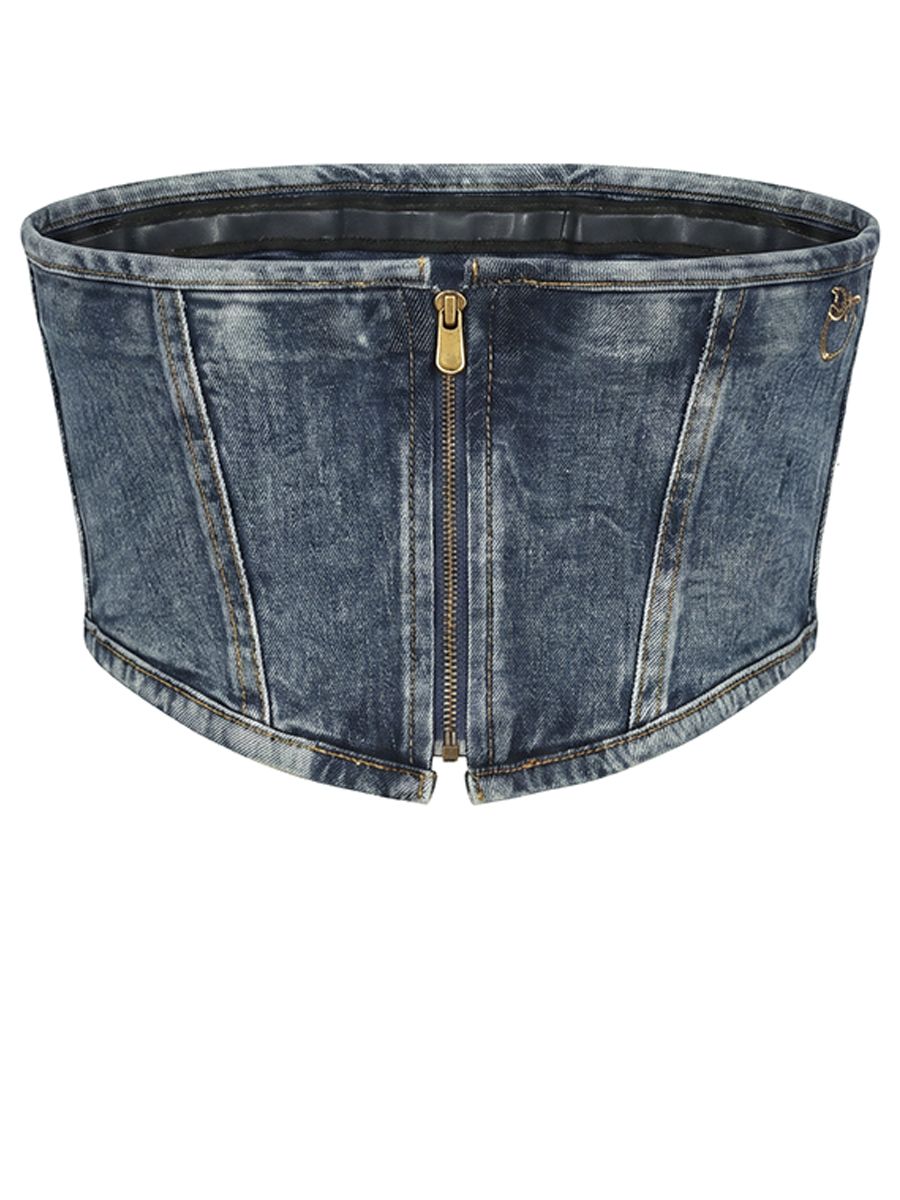 -Модель облегающего кроя с фигурным низом, акцентными вертикальными швами, двумя симметричными клапанами с золотистыми пуговицами спереди, вышитой эмблемой Love Birds сбоку и застежкой на молнию сзади.