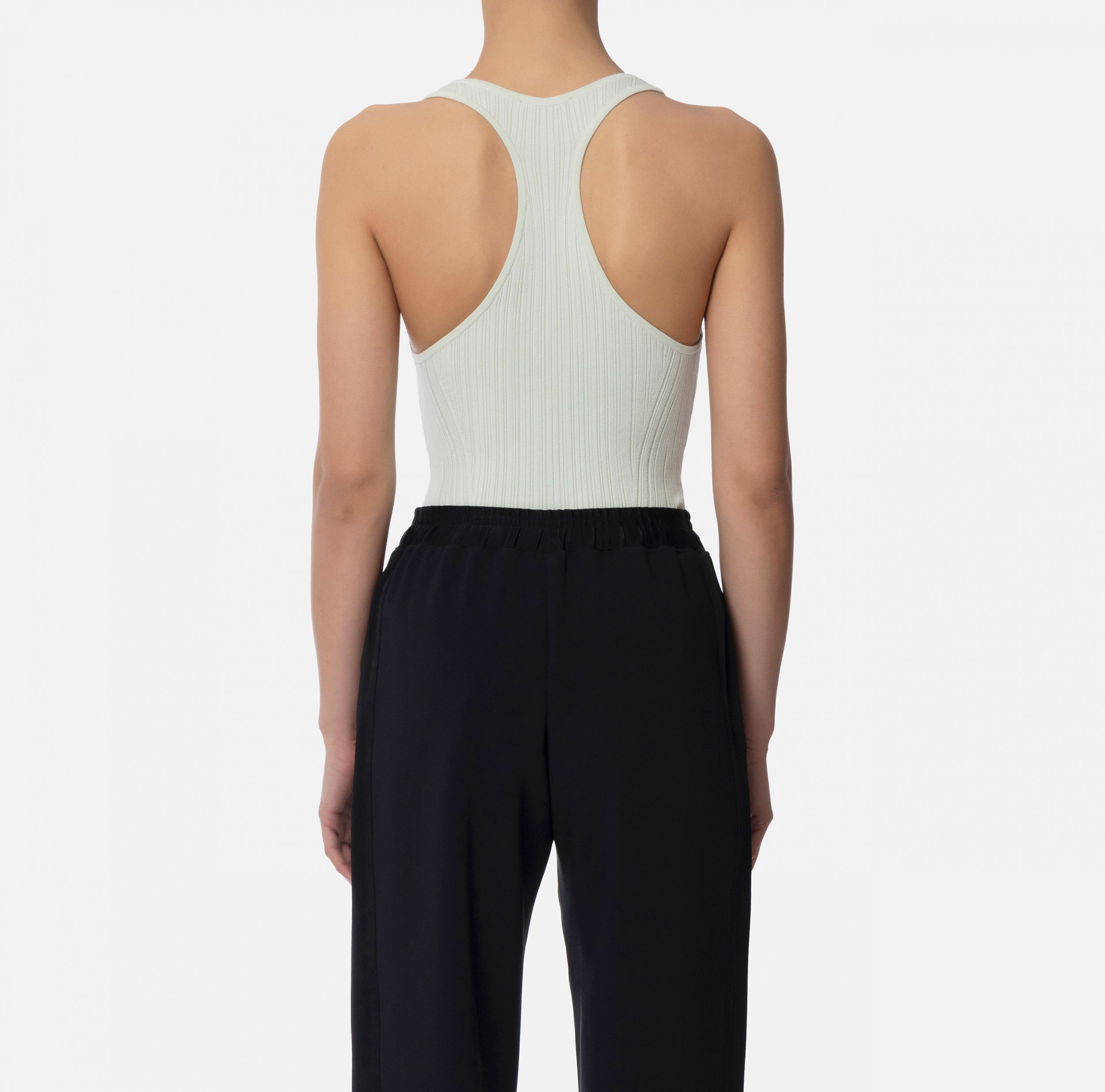 Майка в резинку из лиоцелла и шёлка с глубоким вырезом горловины.