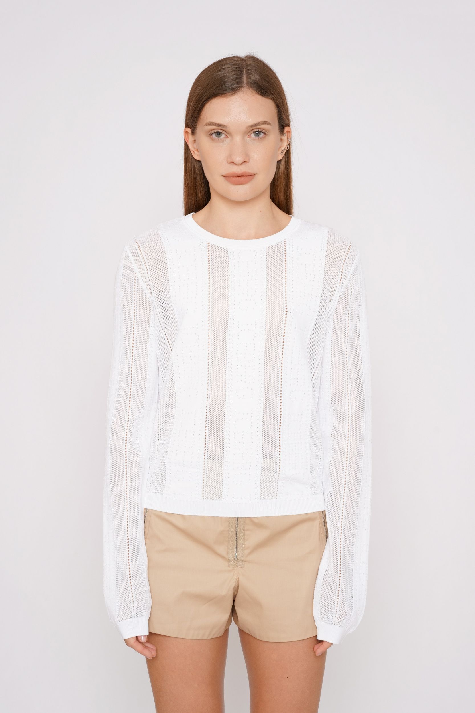 Белый трикотажный джемпер ажурной вязки с паттерном логотипа бренда из смесовой вискозы от ICEBERG.