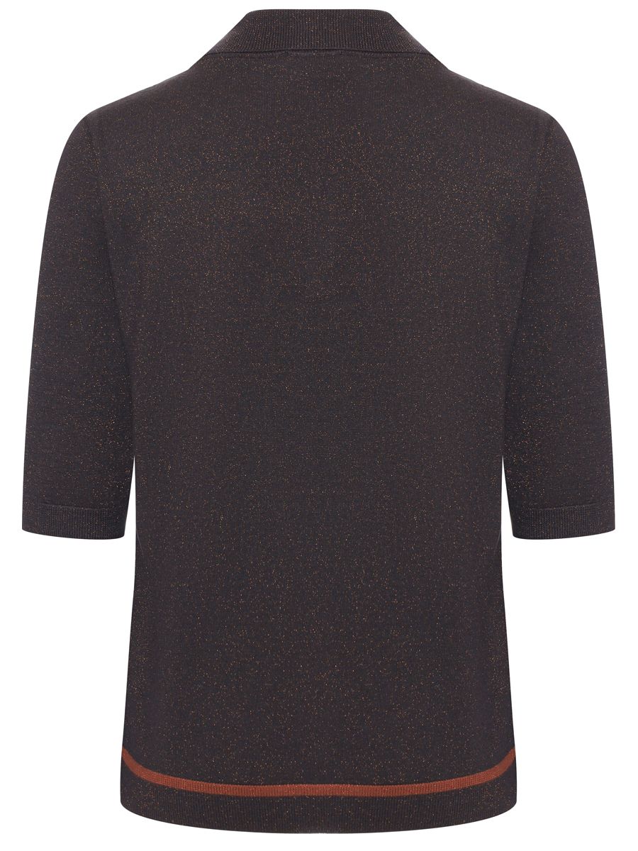 Коричневое трикотажное поло из мягкой смесовой шерсти с люрексом от PANICALE.