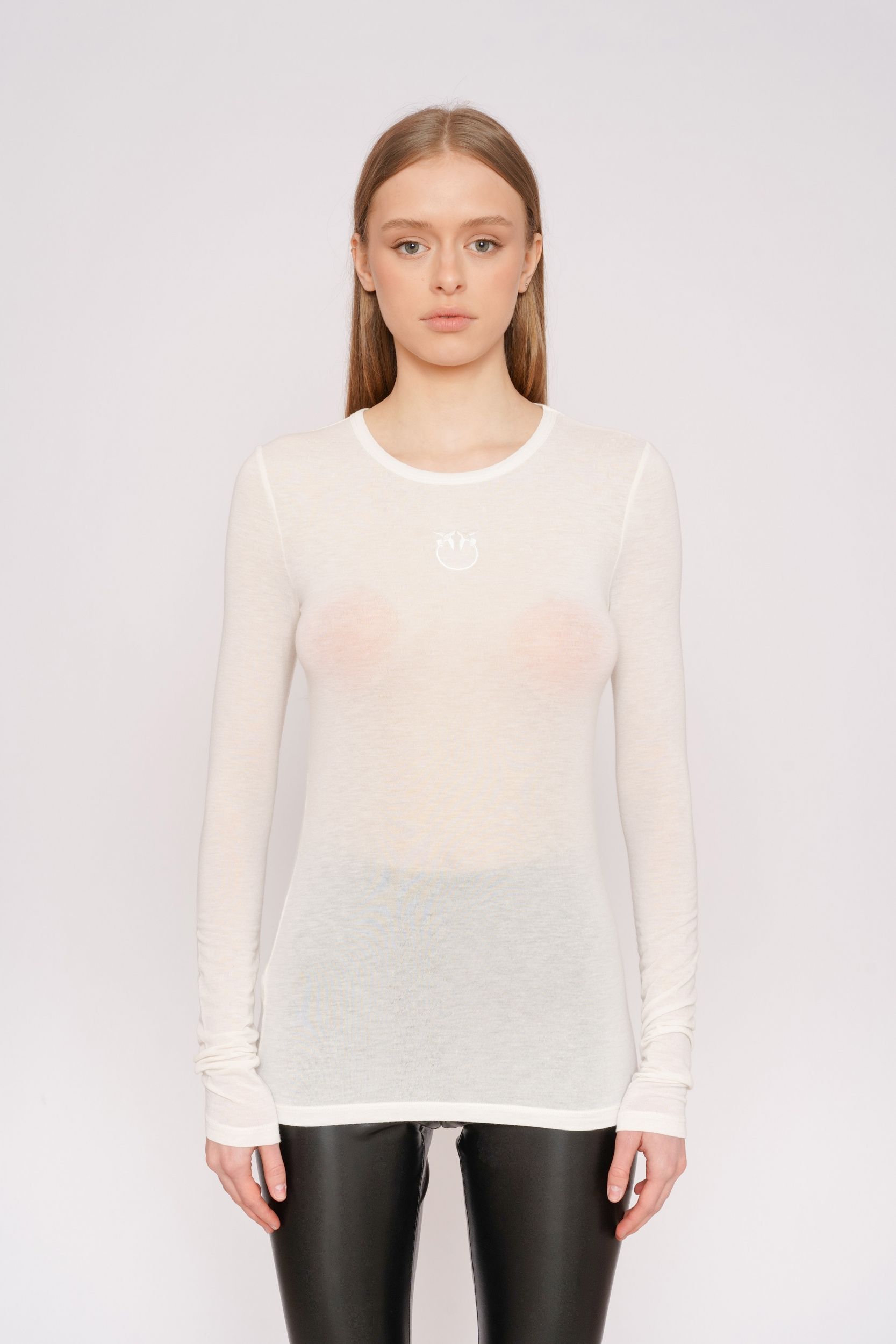 Модель облегающего силуэта с длинными рукавами, круглым вырезом горловины, вышивкой с логотипом Love Birds.