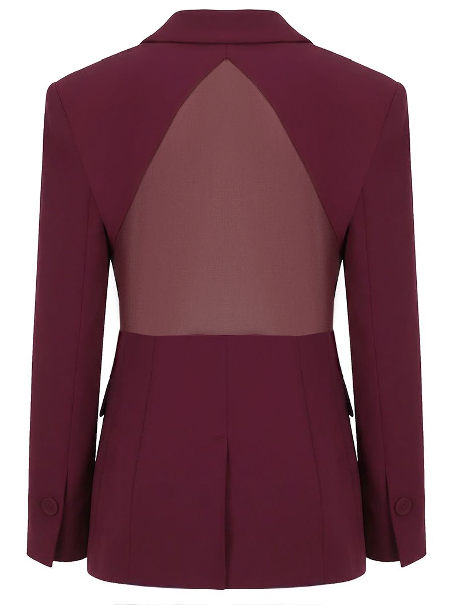 Однобортный жакет из вискозы в сливовом оттенке от PINKO. -Модель полуприлегающего силуэта с длинными рукавами, отложным воротником с лацканами, листочкой, прорезными карманами с клапанами, застежкой на пуговицу и полупрозрачной вставкой на спине.-Жакет станет главным акцентом вашего гардероба, гармонично сочетаясь как с повседневными, так и с вечерними образами.