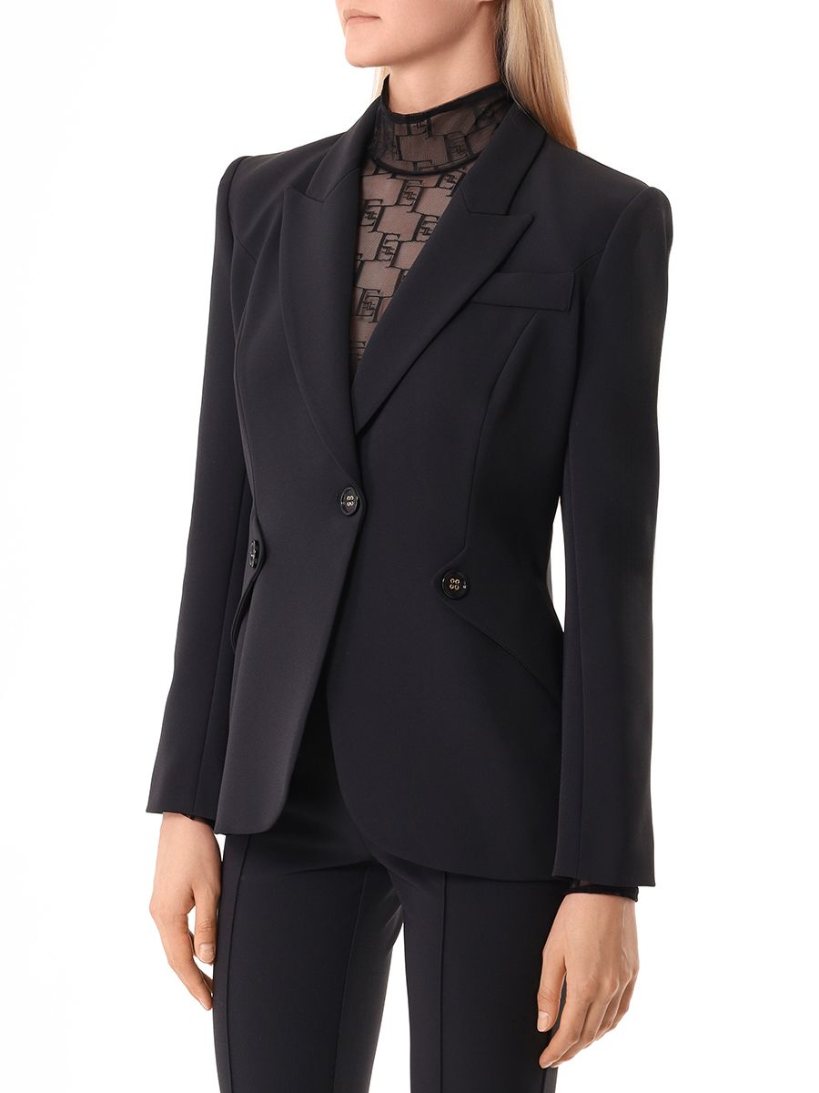 Черный однотонный пиджак из костюмной ткани от ELISABETTA FRANCHI.