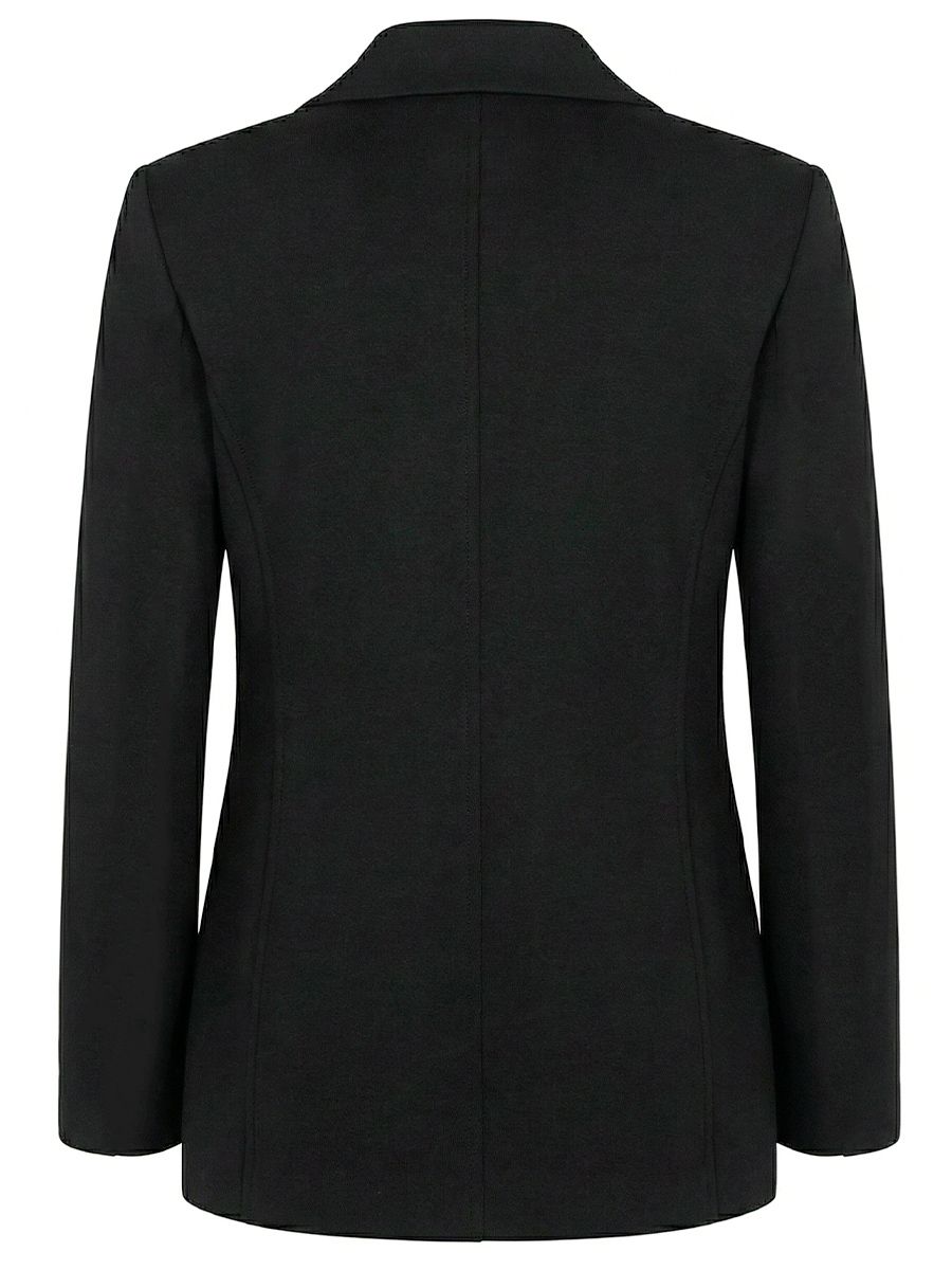 Двубортный пиджак из трикотажа. Блейзер в мужском стиле оформлен структурированными плечами, длинными рукавами и накладными карманами, один из которых украшен вышитым логотипом в тон. Отделка в английскую резинку подчёркивает фактурность и изысканность текстуры. Силуэт oversize.