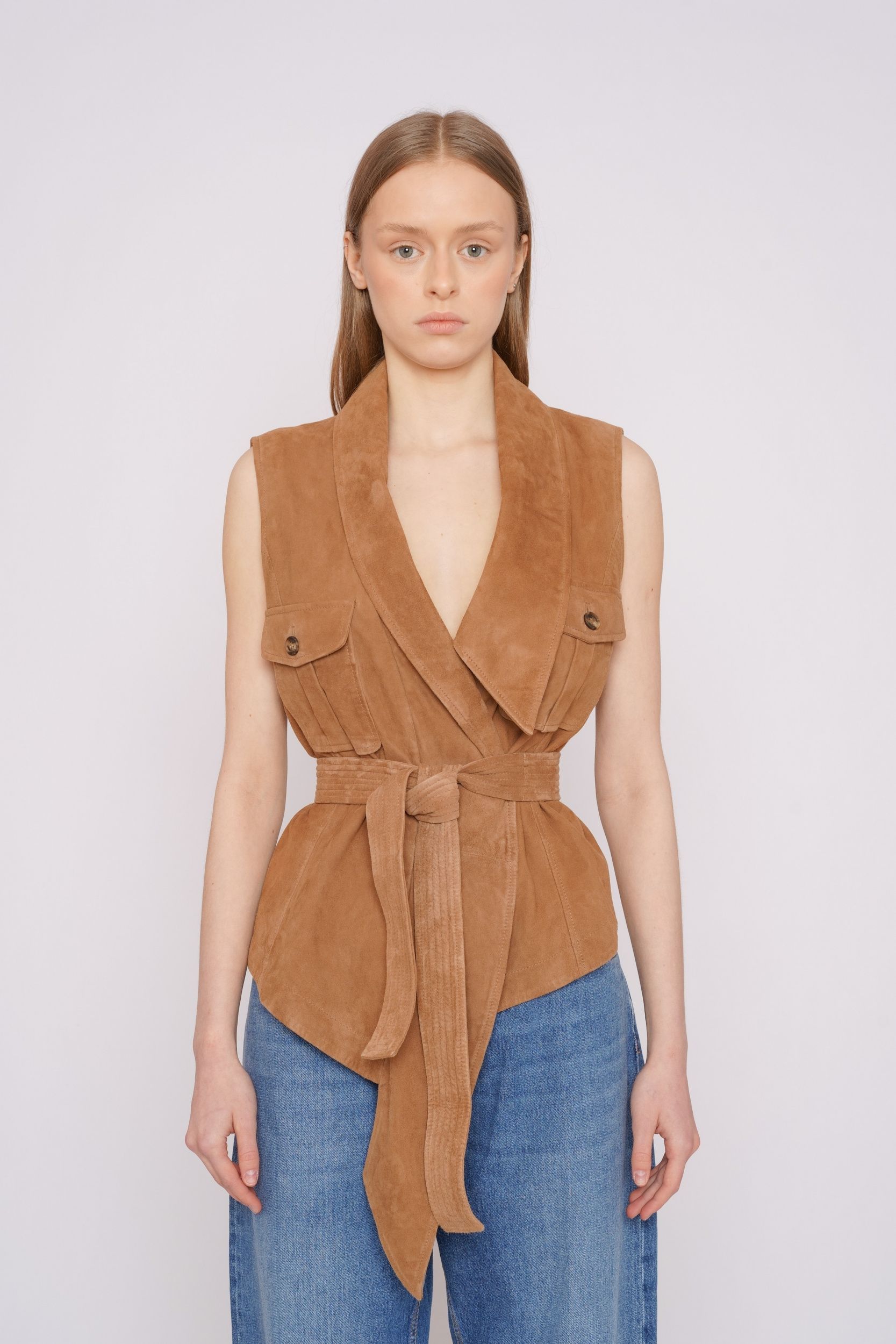 Жилет из фактурной замши от ALBERTA FERRETTI.